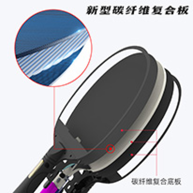 产品卖点:独创的碳纤维复合底板或木质复合板可选的二代智能乒乓球拍,实现了轻量化,横拍重量在185克左右,实用新型专利的组合结构设计,同时实现了高弹性,超轻及声音清脆多项特性,碳纤维复合底板与传统拍比更加优良,胶皮标配四星胶套,定制可出不带胶皮的选项,自行个性化使用胶套.,功能方面也是国内仅有本司生产的第二款可量产的智能乒乓球拍,主打训练与教培市场